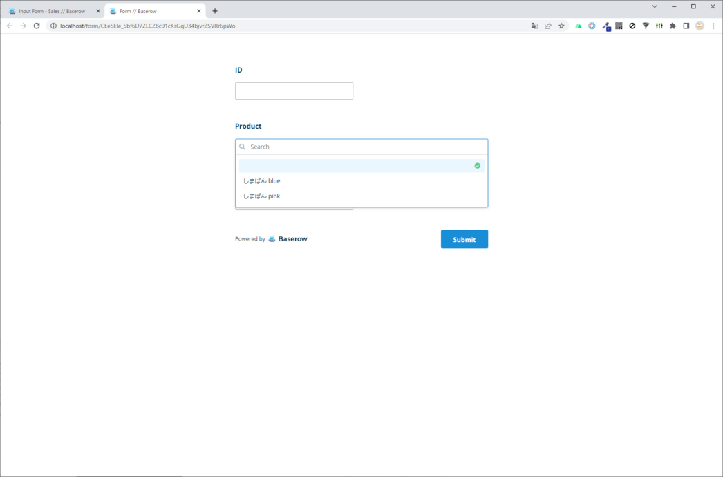 テーブルがリンクされたカラムは、リストからデータを入力できます。